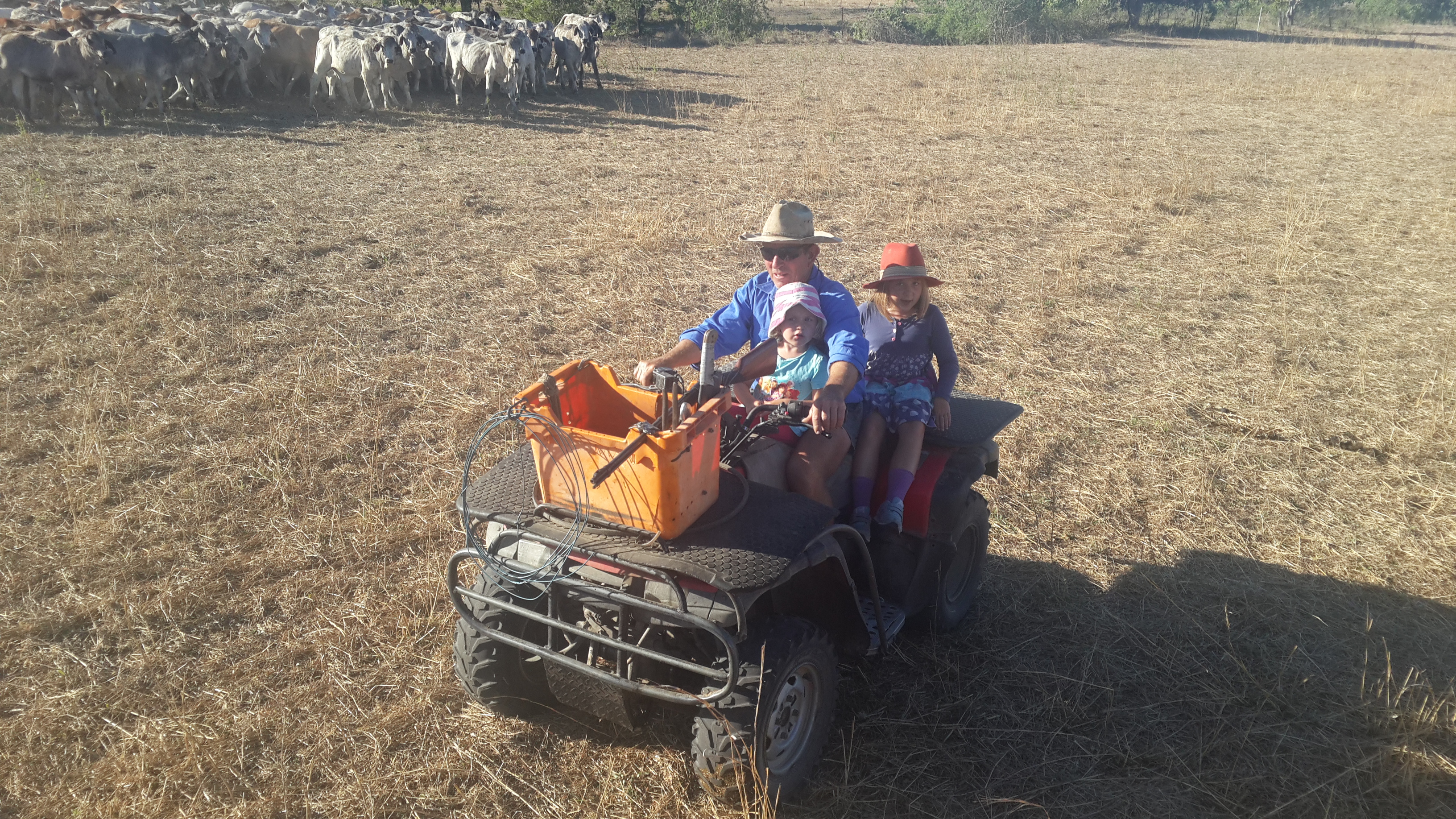 This is home and a work of life for this family. It has been for five generations. By time this place has grown to a size which is a bit hard to understand. In total it is 25000 acres (1 acre = 4047m2) which means that the property is approximately as big as 12500 max sized soccer fields, with a mountain in the middle of it! The land is big enough to grow over 4000 mango trees and have over 2000 Brahman Cattles (type of a cow) herd and plus a lot more. It is amazing to think that all this is under a control of a handful of people, 2 thick skinned men and women and a bunch of loyal and devoted herd dogs.