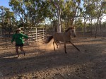 - “Jess working Bens 2 yr old buckskin filly, Dehlia”