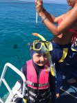 Since our girls wanted to snorkel too the crew helped us to pick the right gears and stayed with us while trying them at the first time. Lara picked up it very fast. She was able to breathe trough the tube and use the fins very well. Ada was a bit more scared and lazy and chose to have a free ride on a life buoy. Nevertheless, the whole family was able to get a closer look of the reef and was able to enjoy it the whole day. Beautiful!!